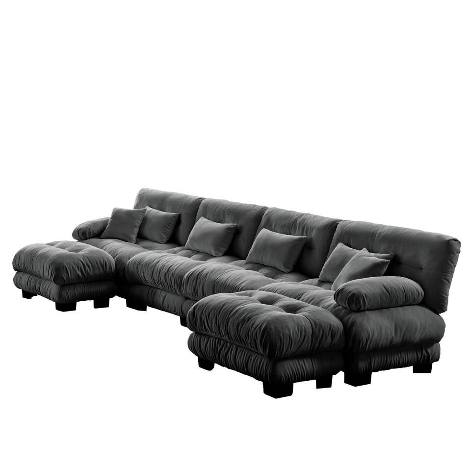 Divano Componibile Modulare a Combinazione Libera, Comodo Divano a U per Soggiorno con 4 Posti e 2 Pouf in Ciniglia Grigia