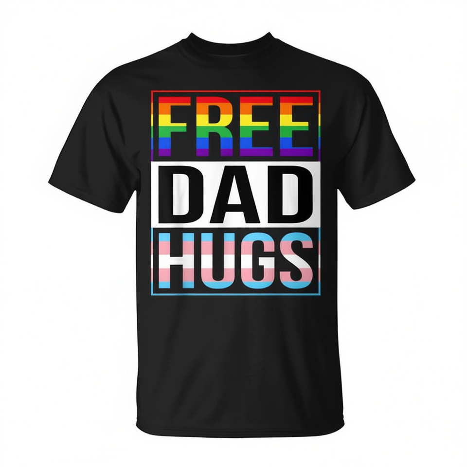 Free Dad Hugs LGBT T-Shirt for Pride Month Transgender Rainbow Flag Promotional Clothing