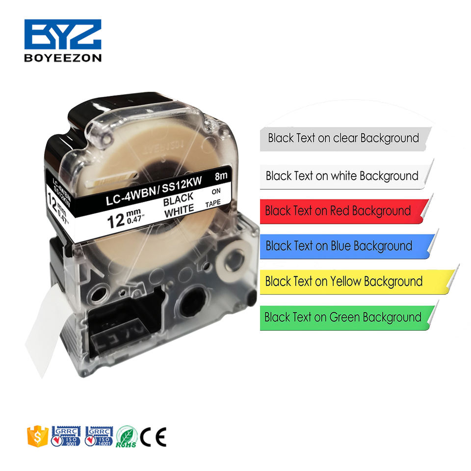 Campione Gratuito: Nastro per Etichette Nero su Bianco SS12KW da 12mm Compatibile con Epson King Jim LW-300 LW-400 LW-600P LW-700