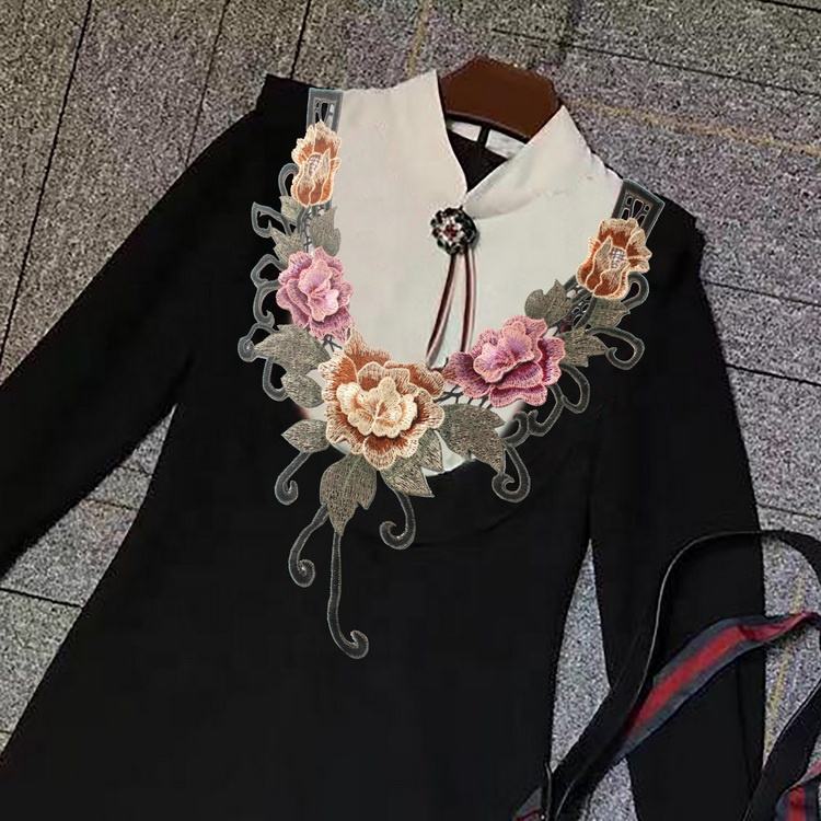 Servizi Del Campione Del Ricamo di Disegno di Modo di trasporto Personalizzato Fiori Ricamato Collare Collo Del Merletto di Patch