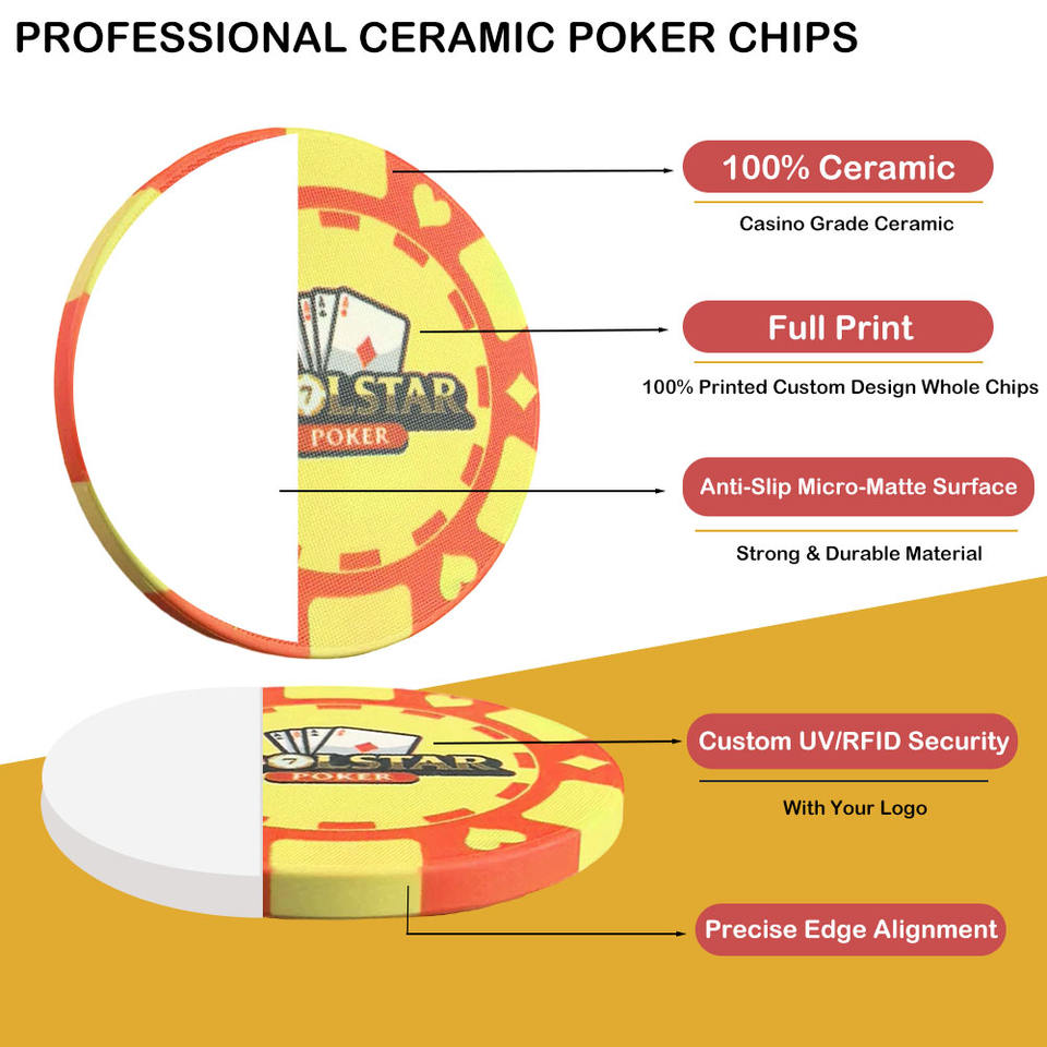Fiches da Poker in Ceramica Personalizzate da 39mm, 10g, Altre Misure Disponibili, per Casinò EPT WPT, Pezzi da Gioco Durevoli