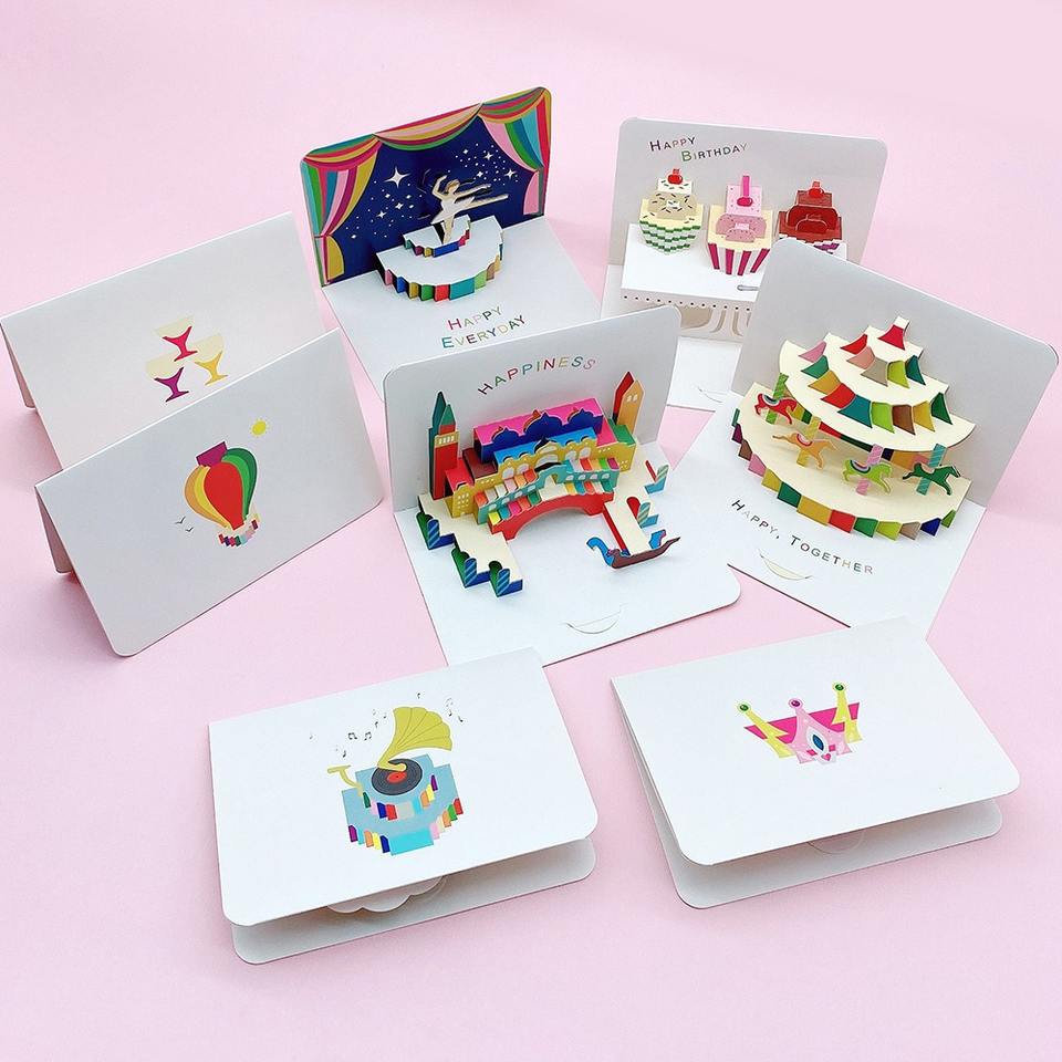 Campione gratuito Mini 3D Pop-up carte regalo di auguri grazie benedizione buon compleanno carta di invito carta di stampa a caldo