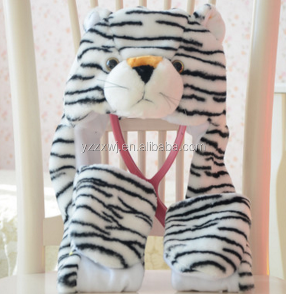 Campione gratuito peluche morbido donna bambini adolescenti cappello animale selvatico con cappuccio sciarpa guanti lunghi tasca/cappelli animali con zampe