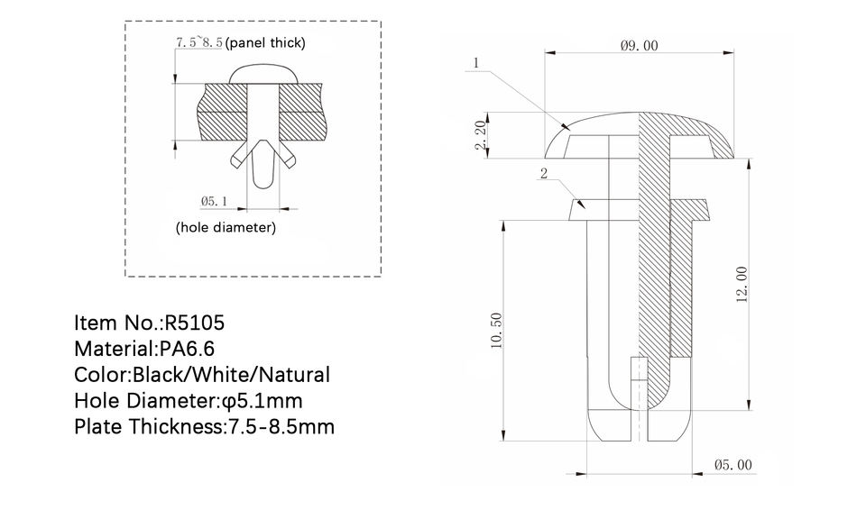 Campione gratuito di fermagli a scatto in Nylon tipo R