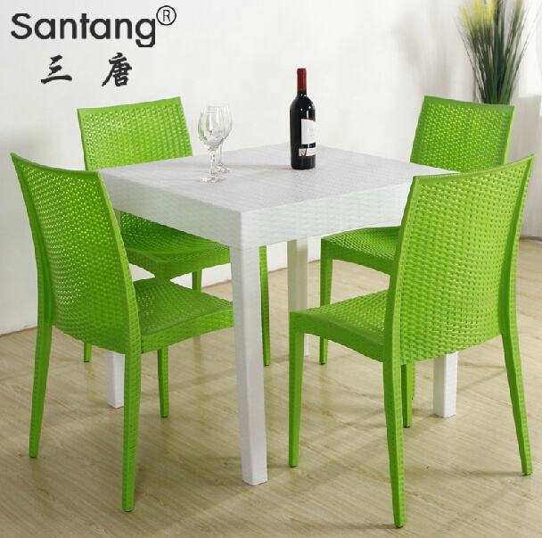 Set da Giardino Impilabile Economico con Tavolo e Sedie in Rattan, Design per Esterni in Plastica