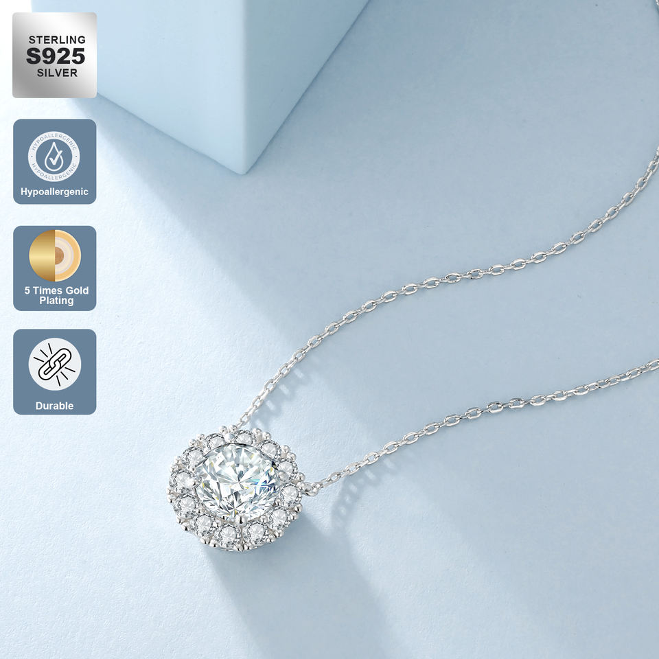 Free Ship to USA 14K Gold Plated 925 Sterling Silver 1-2 Carats Flower Moissanite Diamond Cross Heart Pendant Necklace for Women