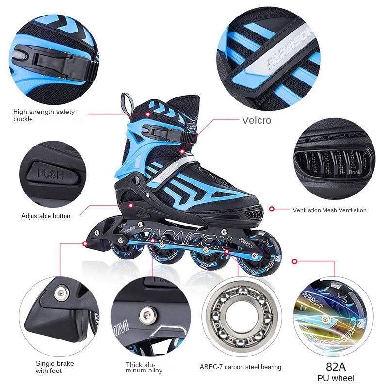 [Spedizione Gratuita] Pattini a Rotelle Regolabili per Principianti, Commercio Estero, Esportazione Transfrontaliera, Set Taglia Adulto, PU Resistente all'Usura