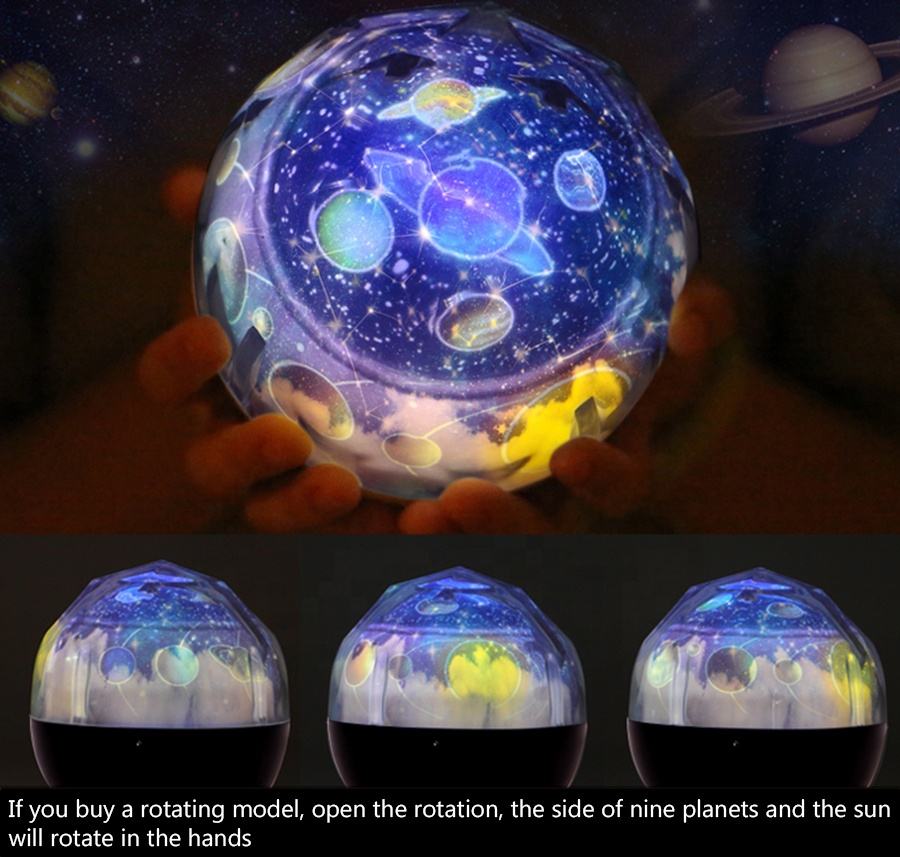 Lampada Notturna Cielo Stellato con Proiettore Magico di Pianeti, Terra e Universo, LED Colorato Rotante e Lampeggiante per Bambini