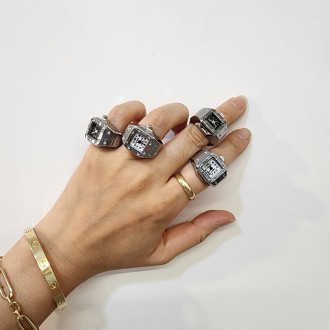 Free Size Vintage Square Ring Watch Unique Finger Ring with Timepiece Functionality