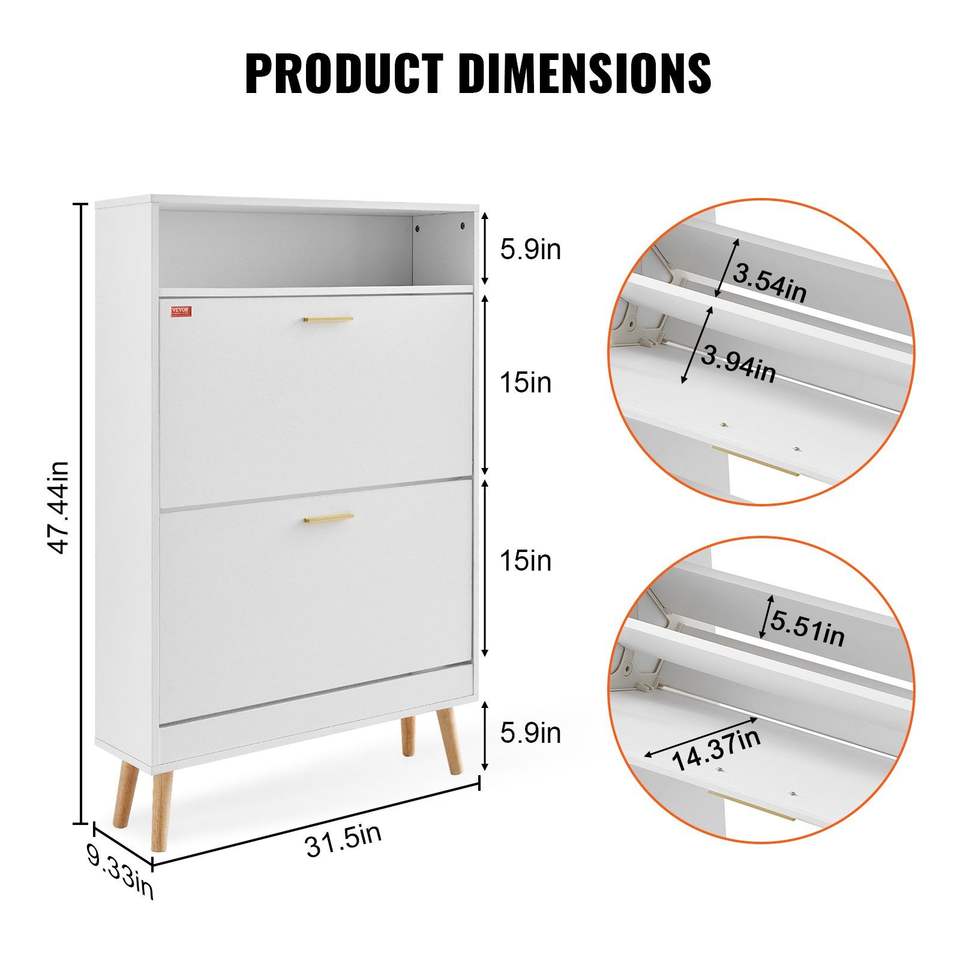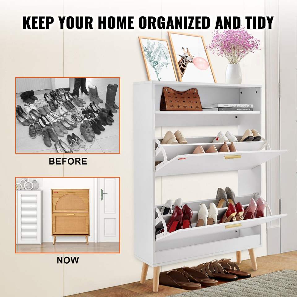 Mobiletto Portascarpe Autoportante a 2 Cassetti con Vano Superiore Ribaltabile per Scatole e Organizzatori di Scarpe da Ingresso