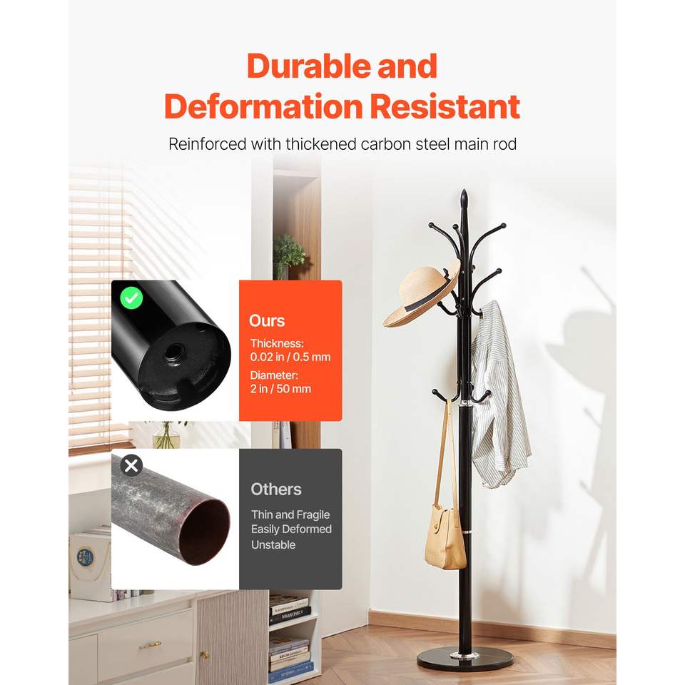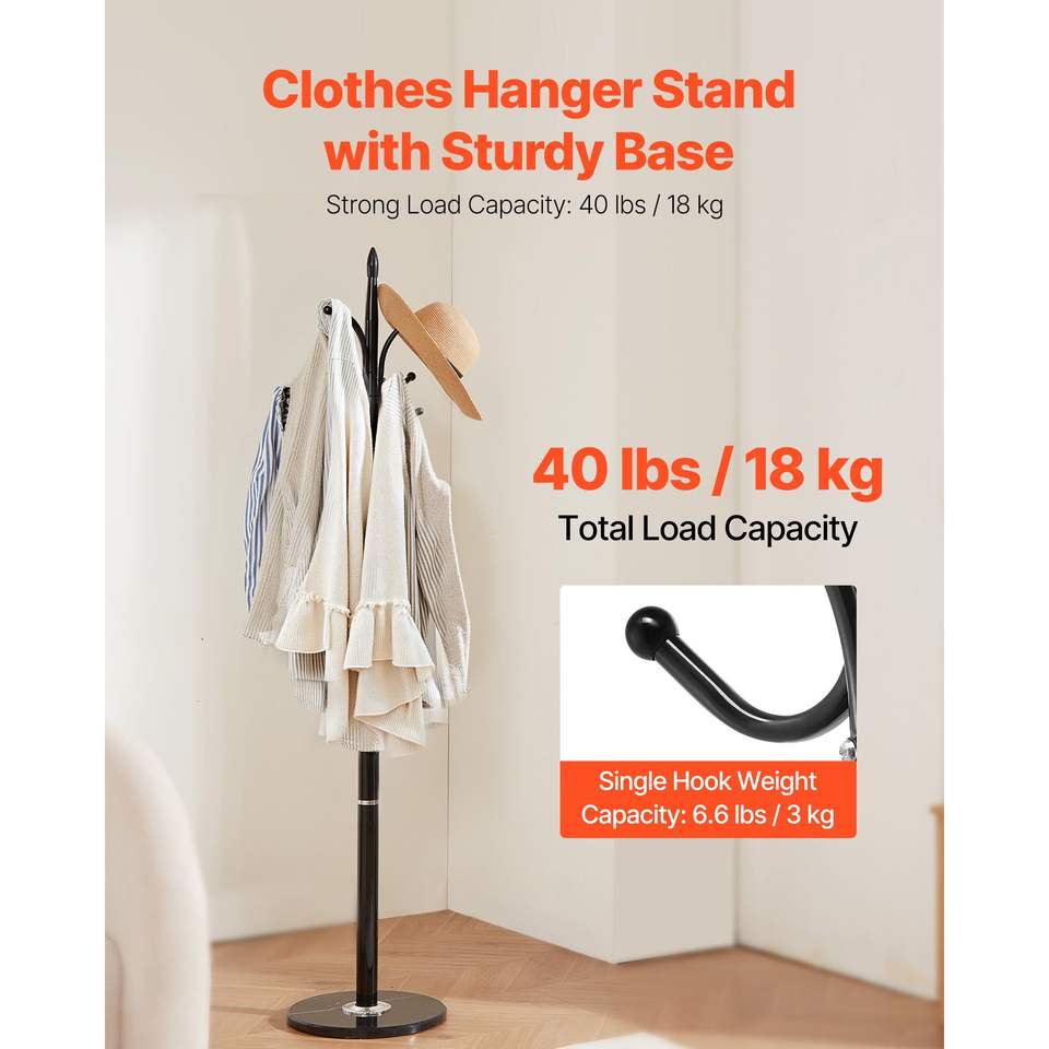 Appendiabiti Autoportante con 6 Ganci, Base in Marmo Stabile, Stand Appendiabiti da Ingresso Autoportante