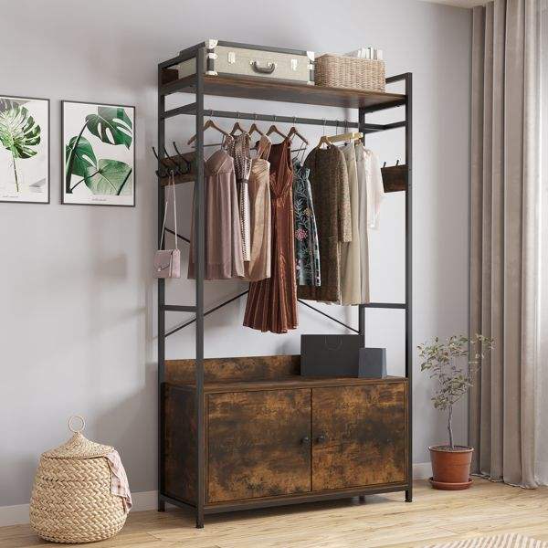 Free-Standing Large Heavy Duty Closet Clothing Rack Independent Wardrobe Manager with Multiple Storage Racks