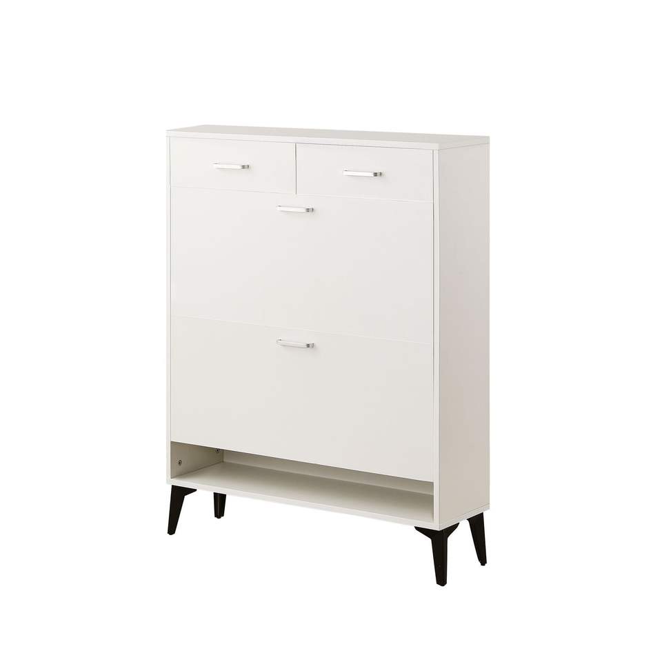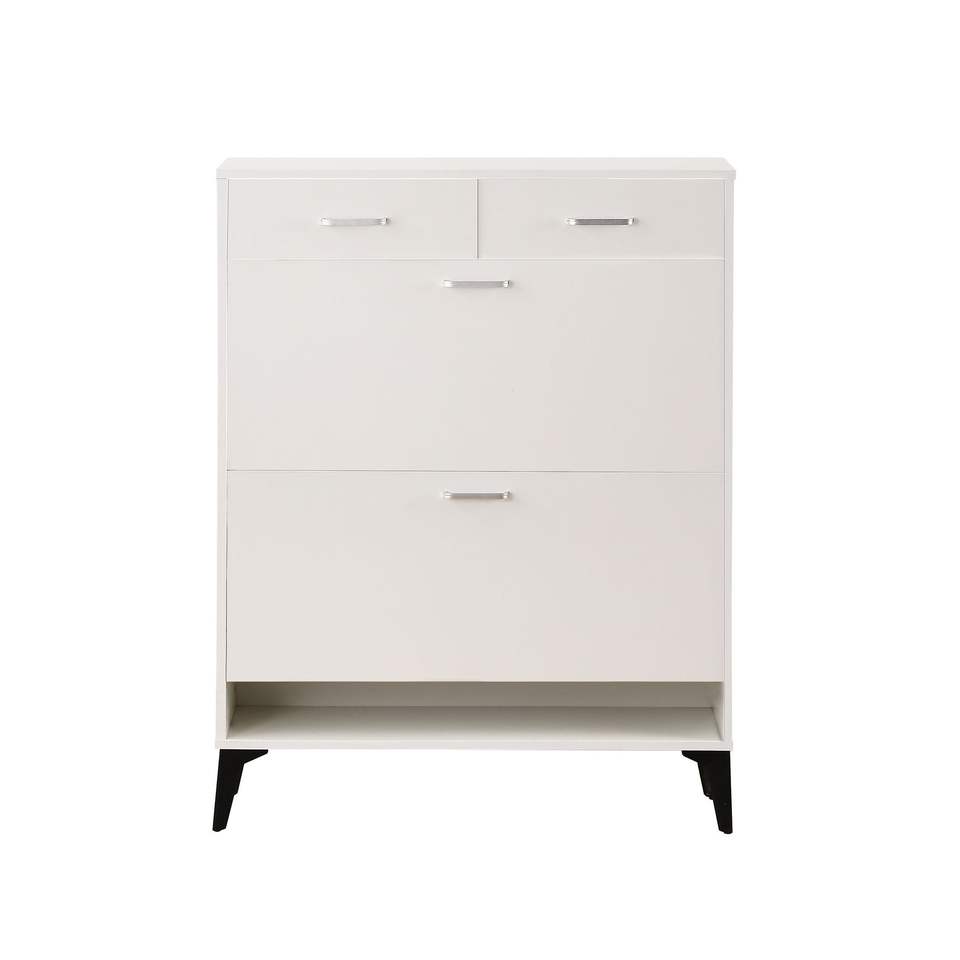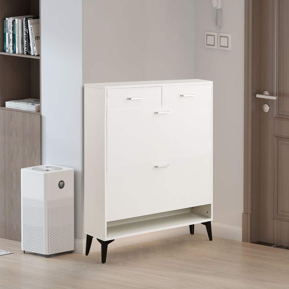 Free Standing Modern Tipping Bucket Shoe Rack 2 Flip Drawers Large Size Organizer with 2 Drawer 2 Drawers