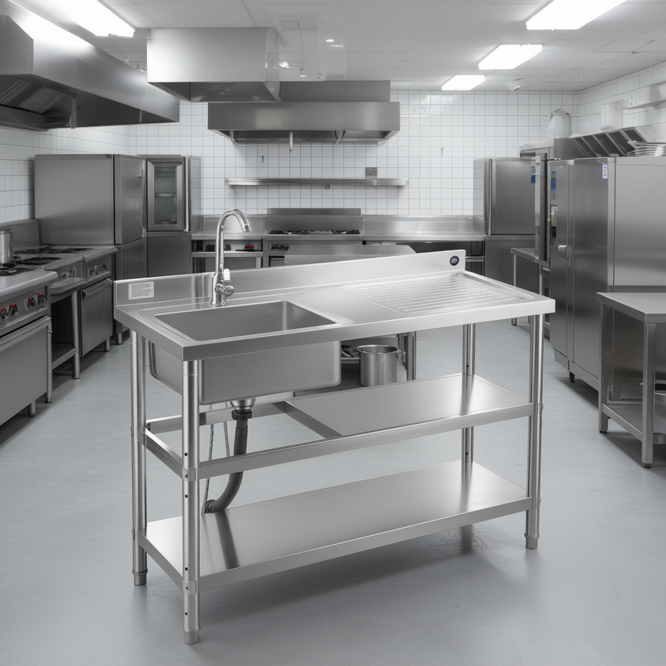 Lavello Commerciale Ivy in Acciaio Inox a Vasca Singola 47.2 X 19.7 Pollici con Sgocciolatoio Destro, Doppio Ripiano e Gambe Regolabili