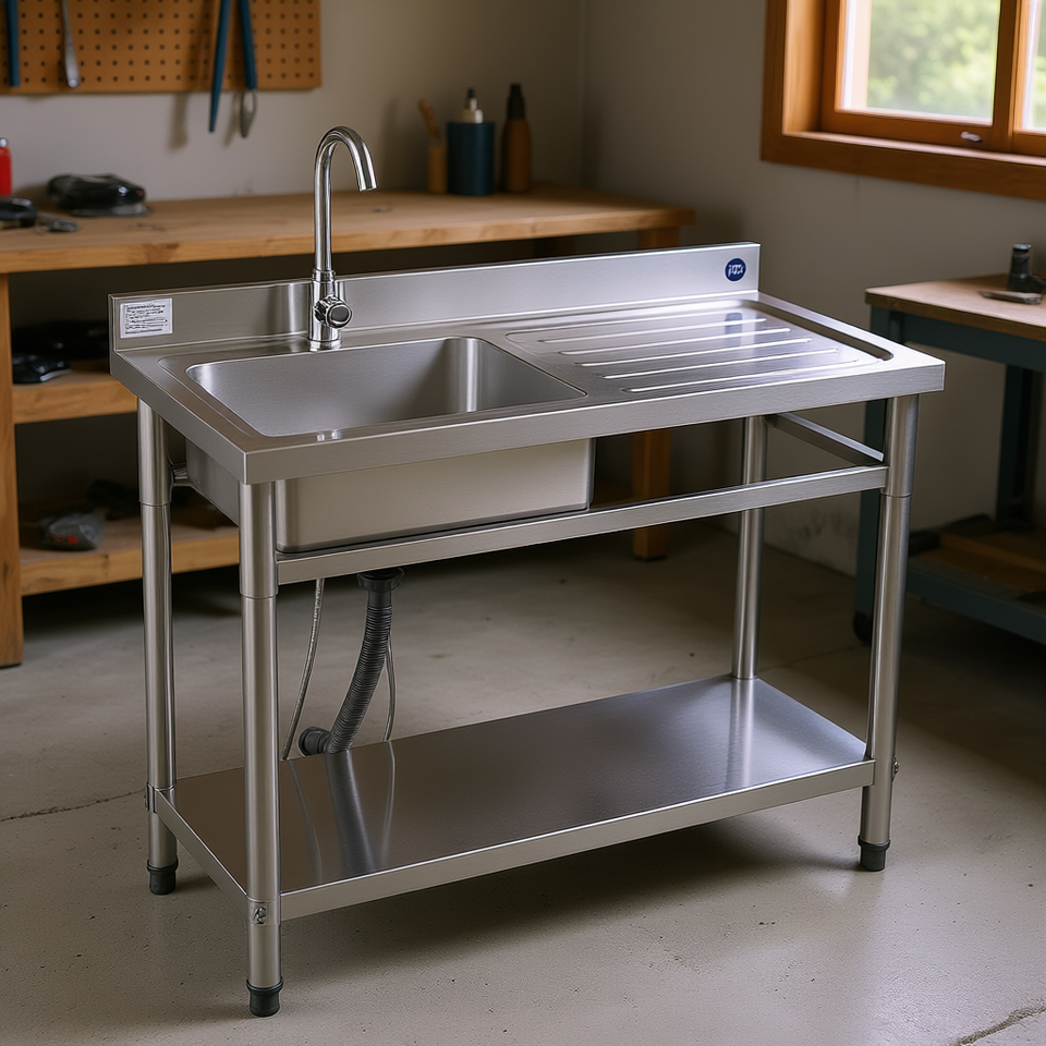 Stainless Steel Single Bowl Utility Sink 39.4 X 19.7 In Right Drainboard With Faucet Free Standing Kitchen Garage