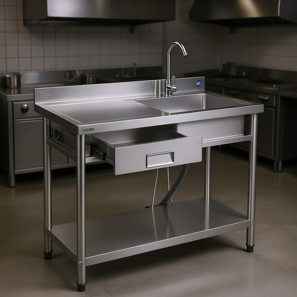 Lavello Commerciale in Acciaio Inossidabile 39.4 x 19.7 Pollici a Vasca Singola con Rubinetto e Gambe Regolabili