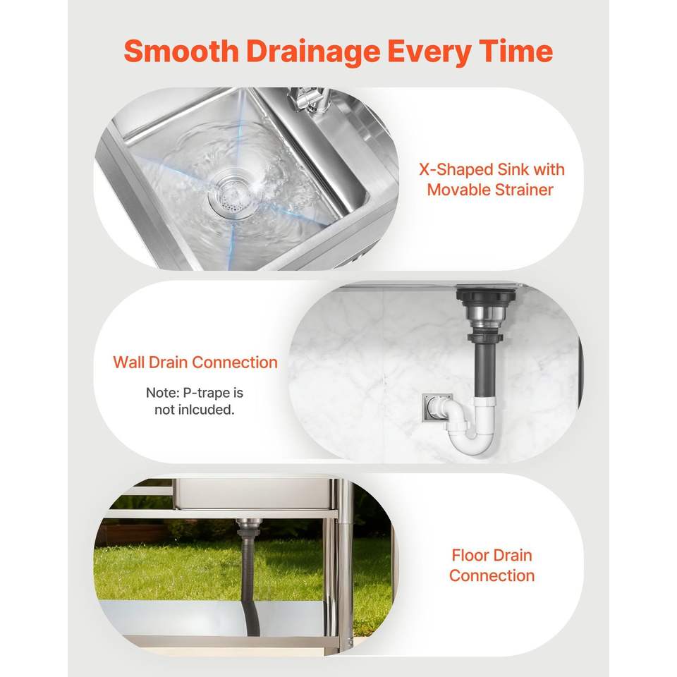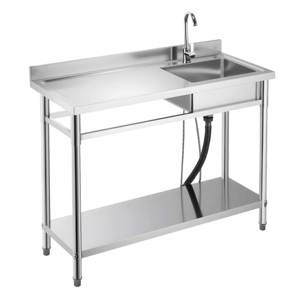 Lavello Commerciale Autoportante in Acciaio Inossidabile a Vasca Singola con Rubinetto, Lavello Utilitario da Lavoro per Banco da Lavoro con Vasca Sinistra