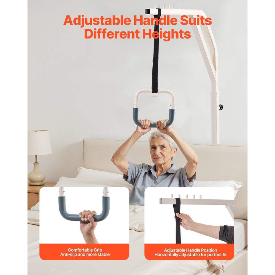 Barra Trapezoidale Autoportante per Mobilità a Letto, Regolabile in Altezza, 2 Ruote, Capacità 136 kg, Dispositivo di Assistenza per Sollevamento dal Letto