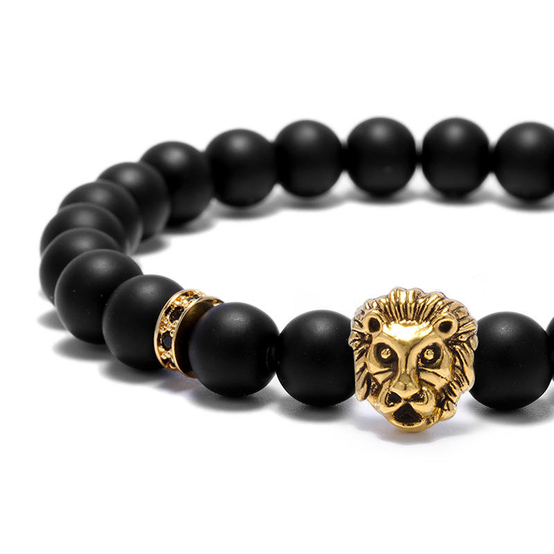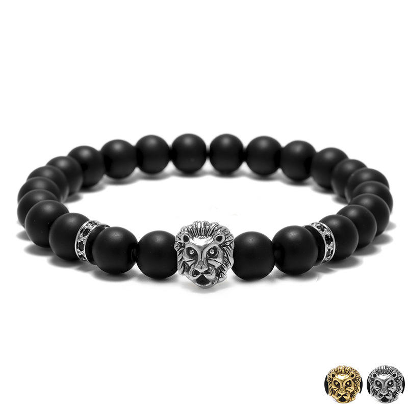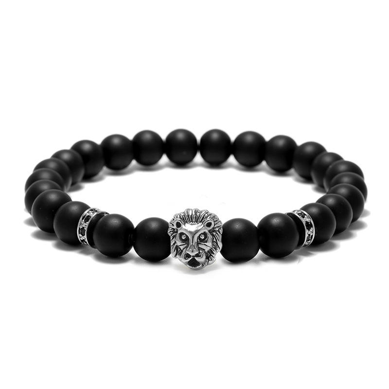 Stile libero di trasporto libero Maschio di Disegno Del Braccialetto di Argento Antico Testa di Leone di Fascino Macrame Distanziatori Matte Onyx Agata Nera Bead Bracciali
