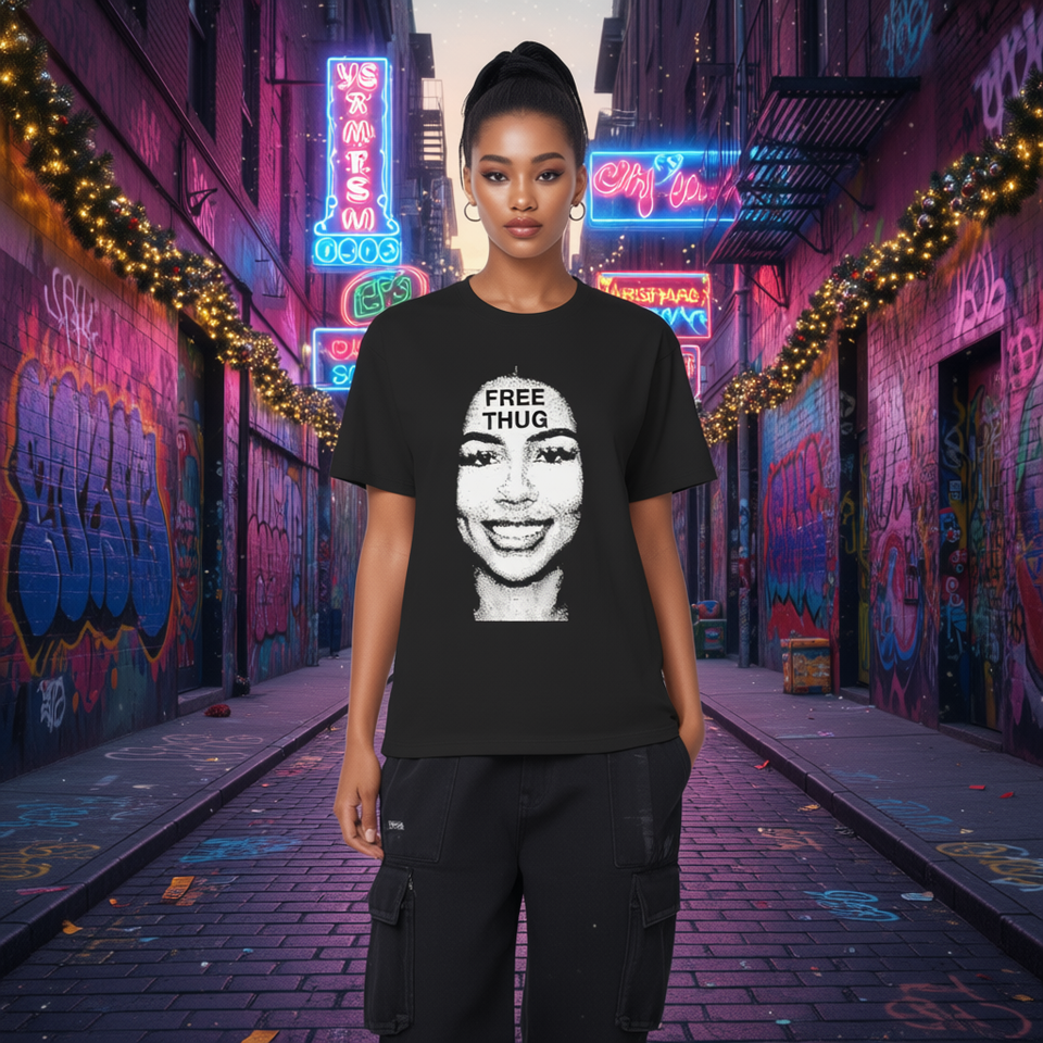 Free Thug Graphic Box Fit T-Shirt Kids Oversized Streetwear Cotton Jersey Short Sleeve Crew Neck All Seasons