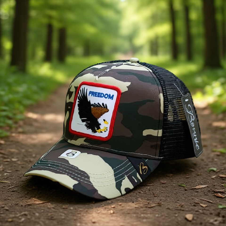 Freedom Eagle Embroidery Trucker Hat Camouflage Mesh Adjustable Unisex Adult Casual 6-Panel Cap