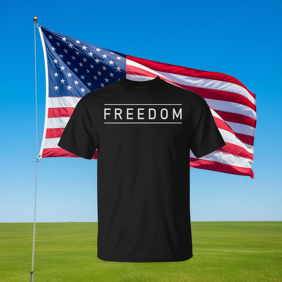 T-shirt Freedom in stile patriottico, nera, taglia adulta unisex