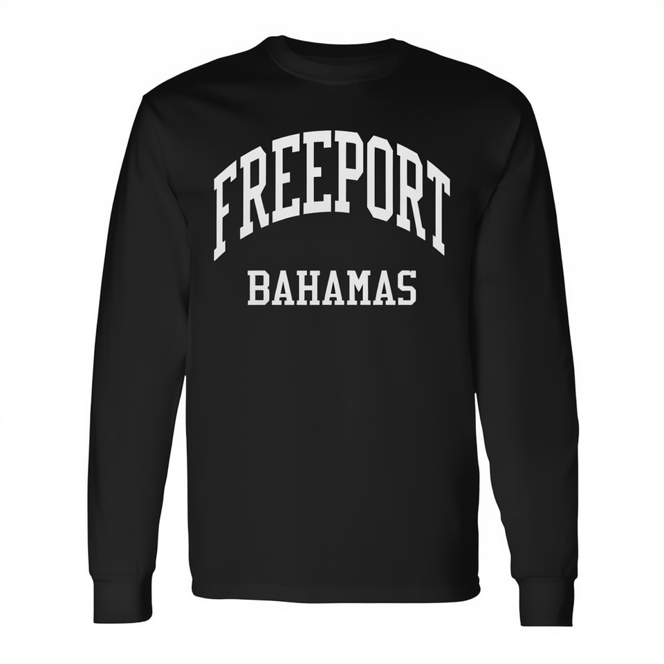 T-shirt a maniche lunghe Freeport Bahamas stile college retrò anni '70