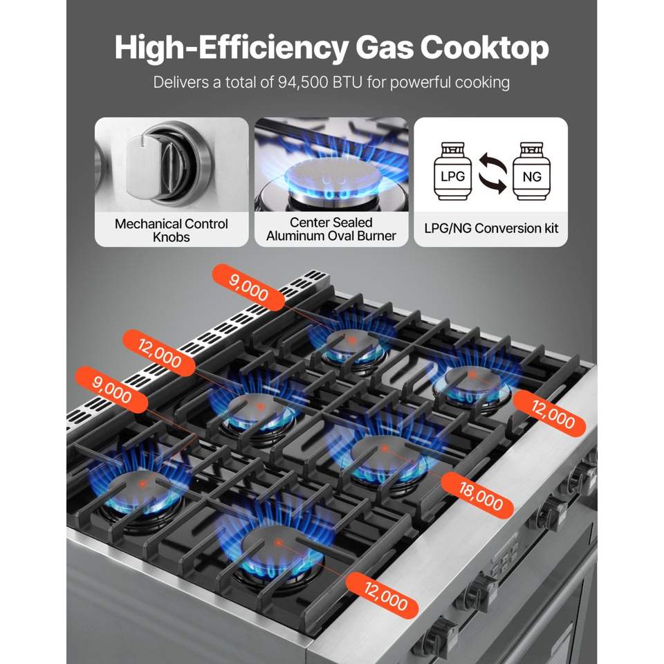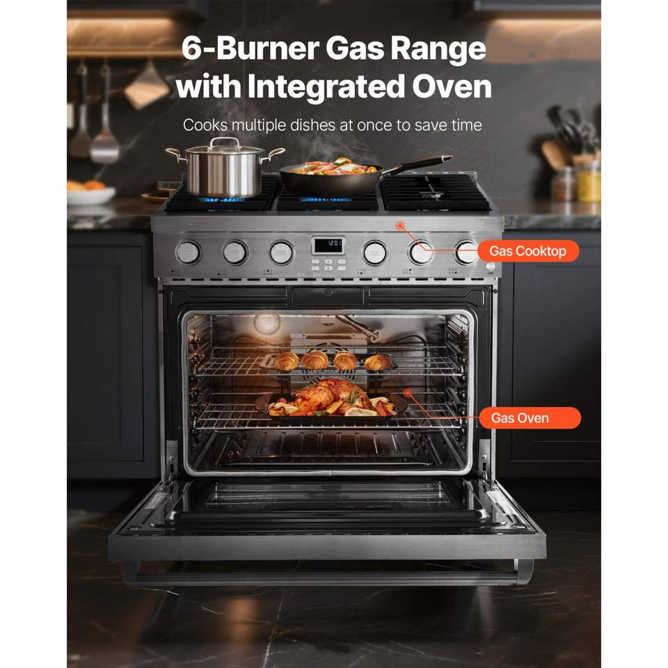 Cucina a gas indipendente in acciaio inossidabile da 35,9 pollici con 6 bruciatori sigillati e griglie di facile accesso