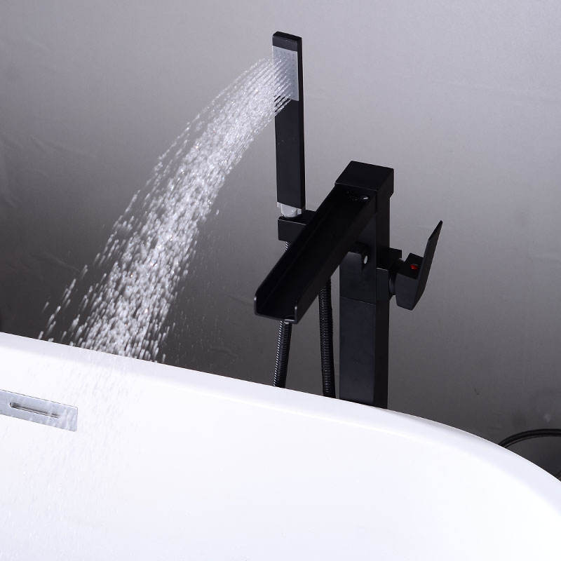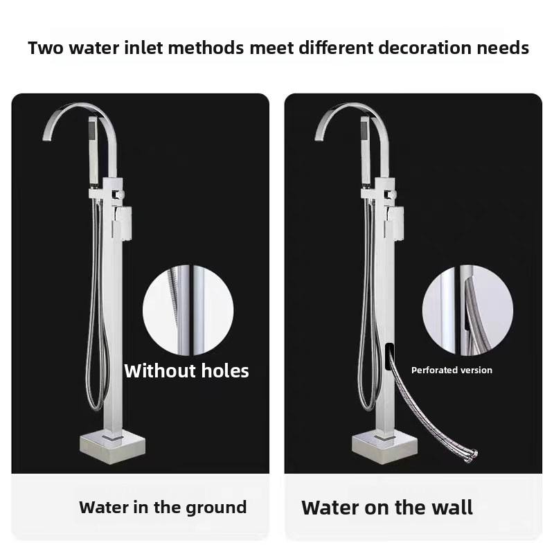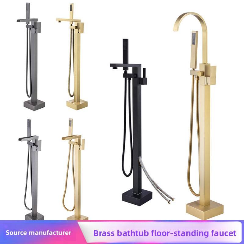 Rubinetto per Vasca da Bagno Autoportante in Rame con Acqua Calda/Fredda, Set Doccia Laterale con Getto a Pioggia Singolo per Doccia da Seduti/In Piedi