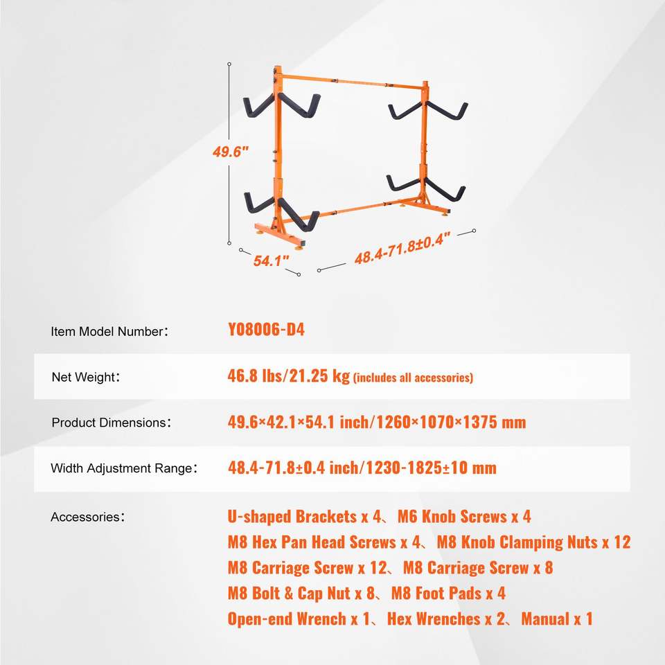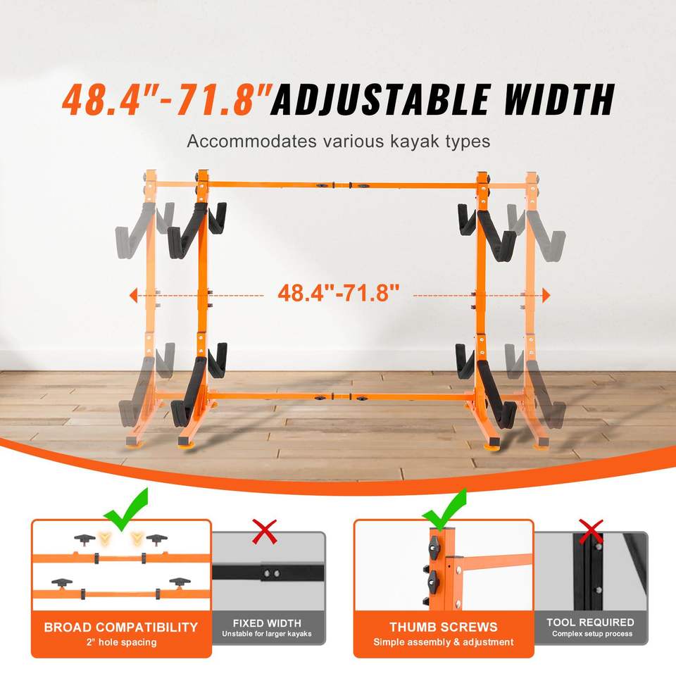 Supporto Autoportante in Acciaio Resistente per 4 Kayak, Canoe e Paddleboard con Porta AR Imbottito