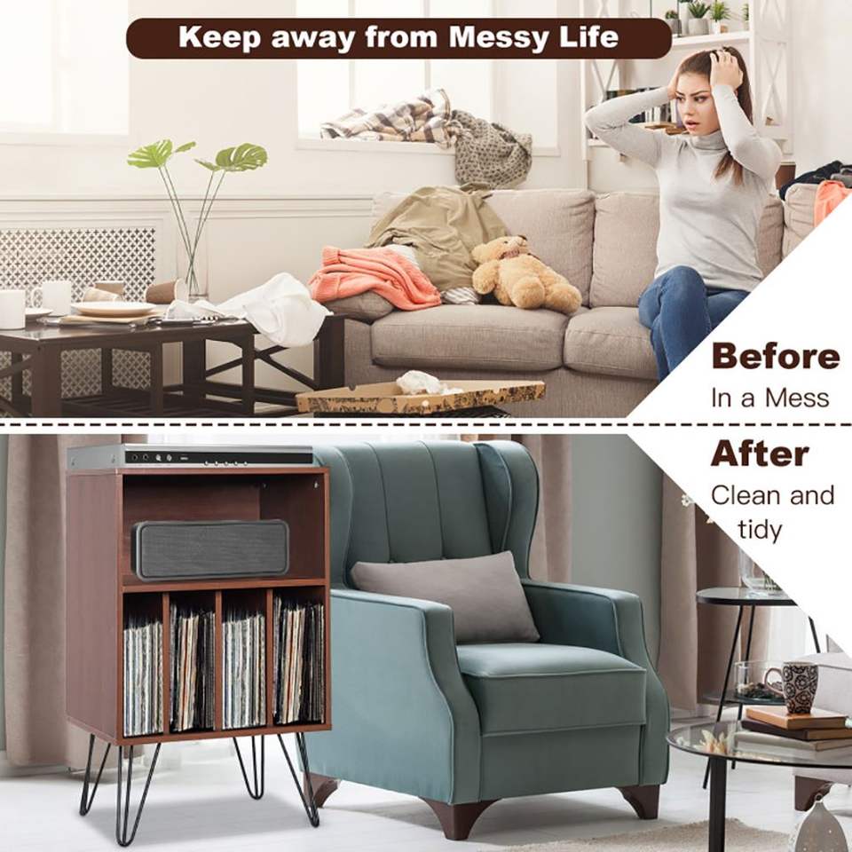 Freestanding Metal Leg Record Player Stand and Record Storage Cabinet Elegant Living Room Furniture