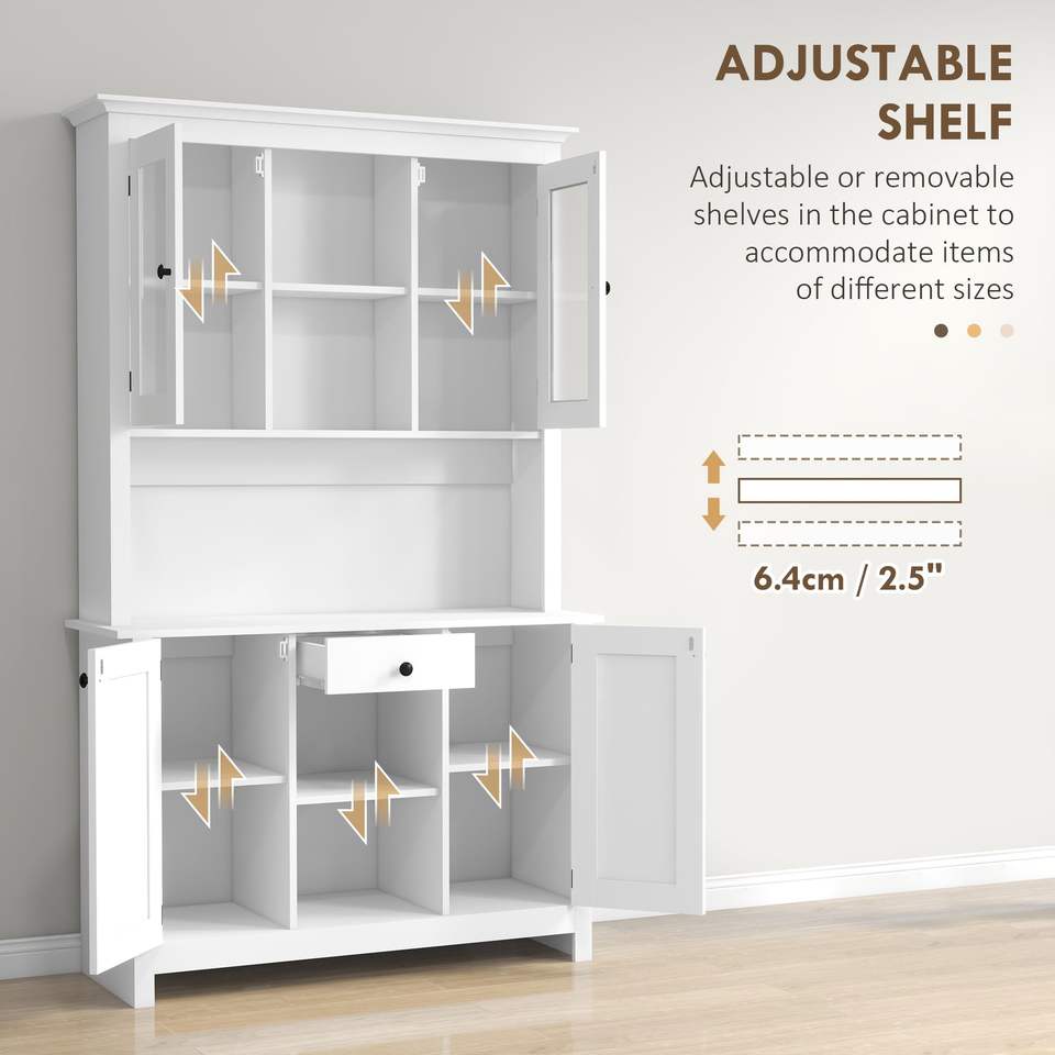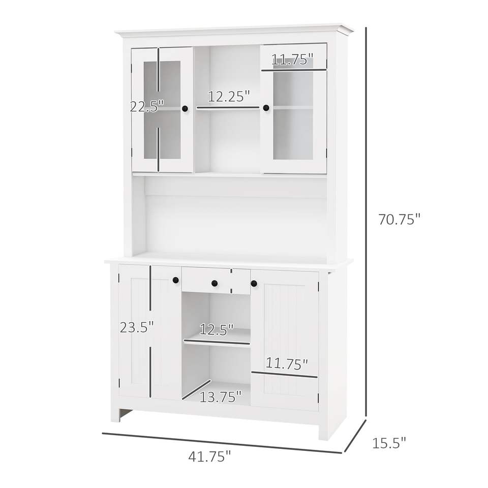 Freestanding White Rustic Kitchen Pantry Cabinet Adjustable Shelves Microwave Stand Beadboard Panel Drawer Buffet Hutch Buffet