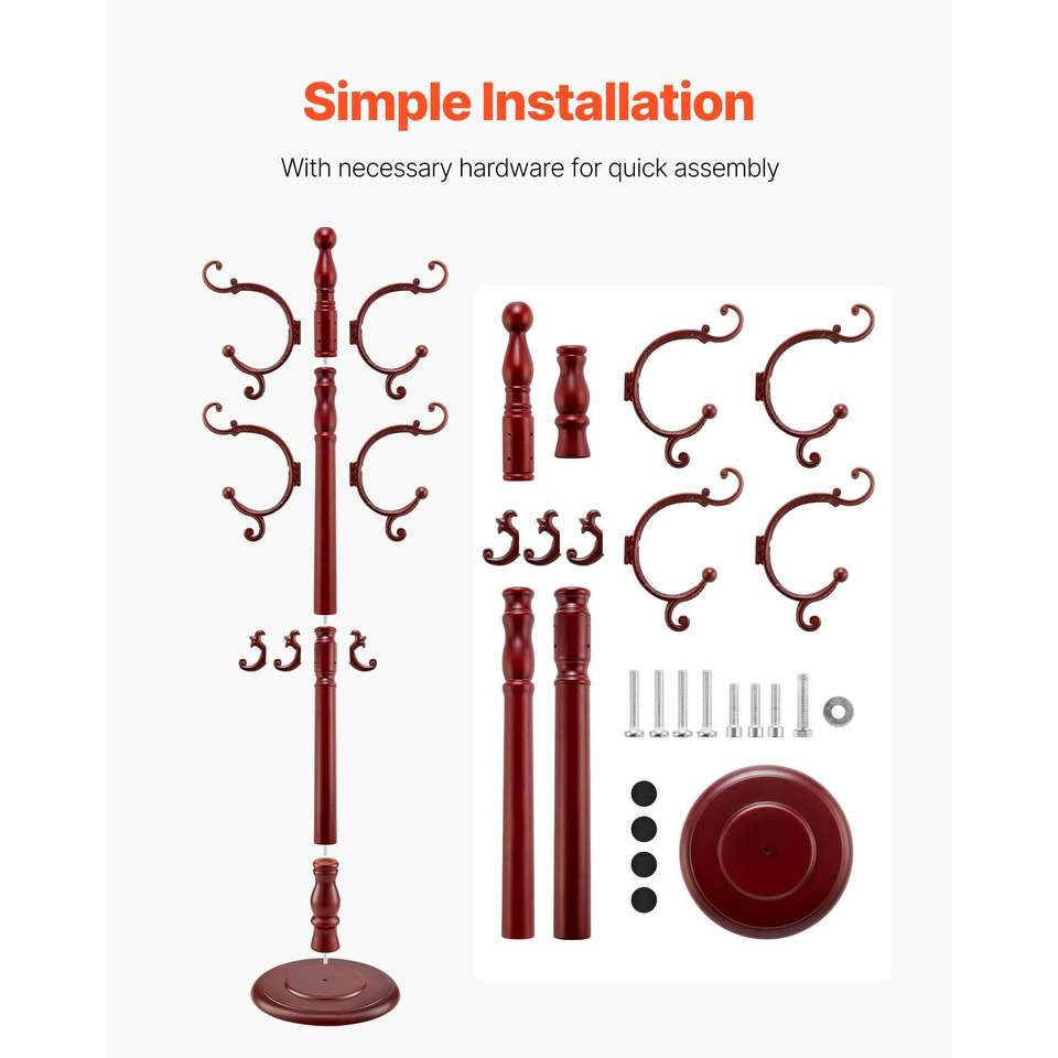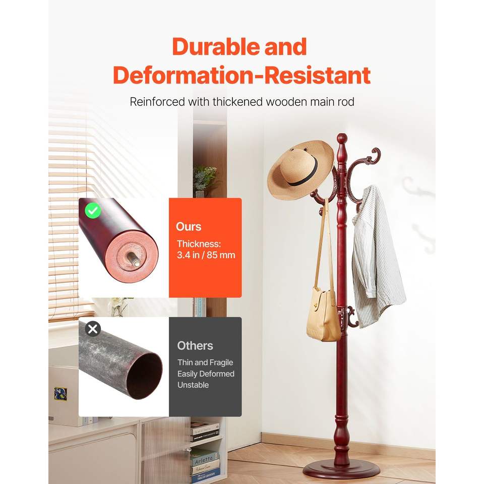 Appendiabiti da terra in legno con 11 ganci e base pesante, ganci da parete e appendiabiti per ingresso, corridoio o camera da letto