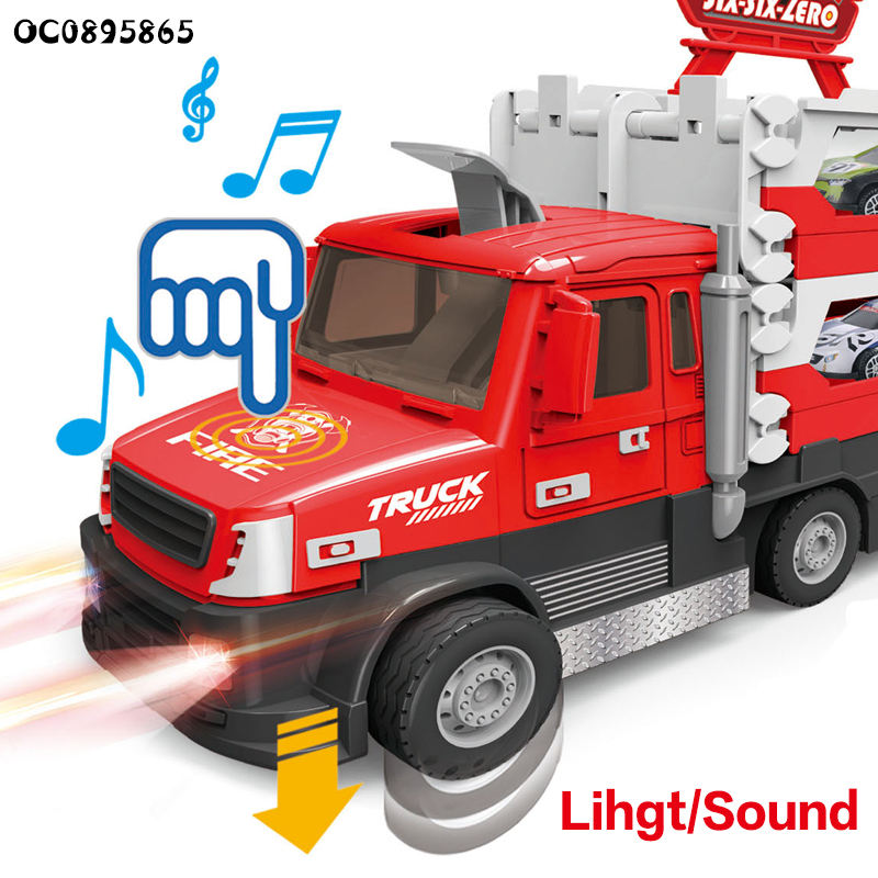 Ferrovia a ruota libera catapulta auto veicolo giocattolo trasporto auto camion dei pompieri per i bambini