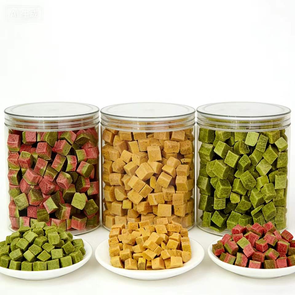Snack Liofilizzati per Cani e Gatti: Pollo, Frutta del Drago, Zucca, Patata Dolce Viola, Spinaci - Snack in Scatola per Animali Domestici