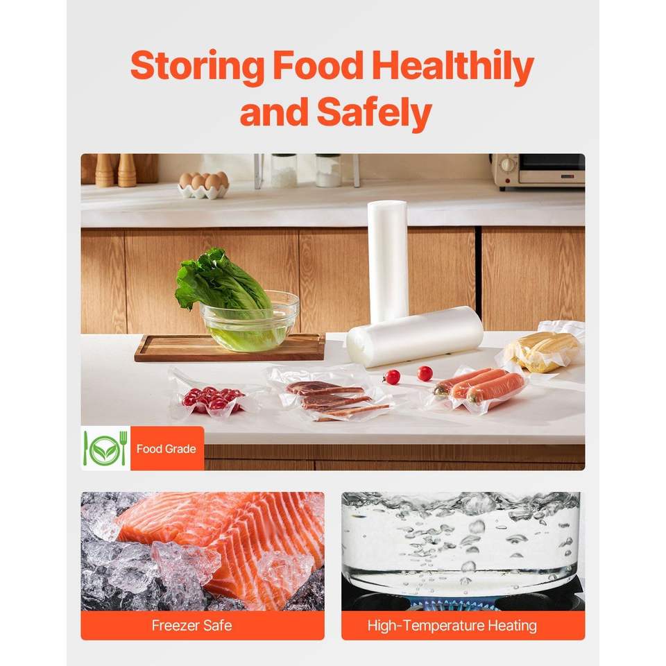 Sacchetti Sottovuoto Personalizzabili per Congelatore 11 x 50 Piedi Senza BPA per Alimenti, 2 Rotoli - Conservazione Pasti Sigillabili