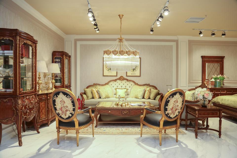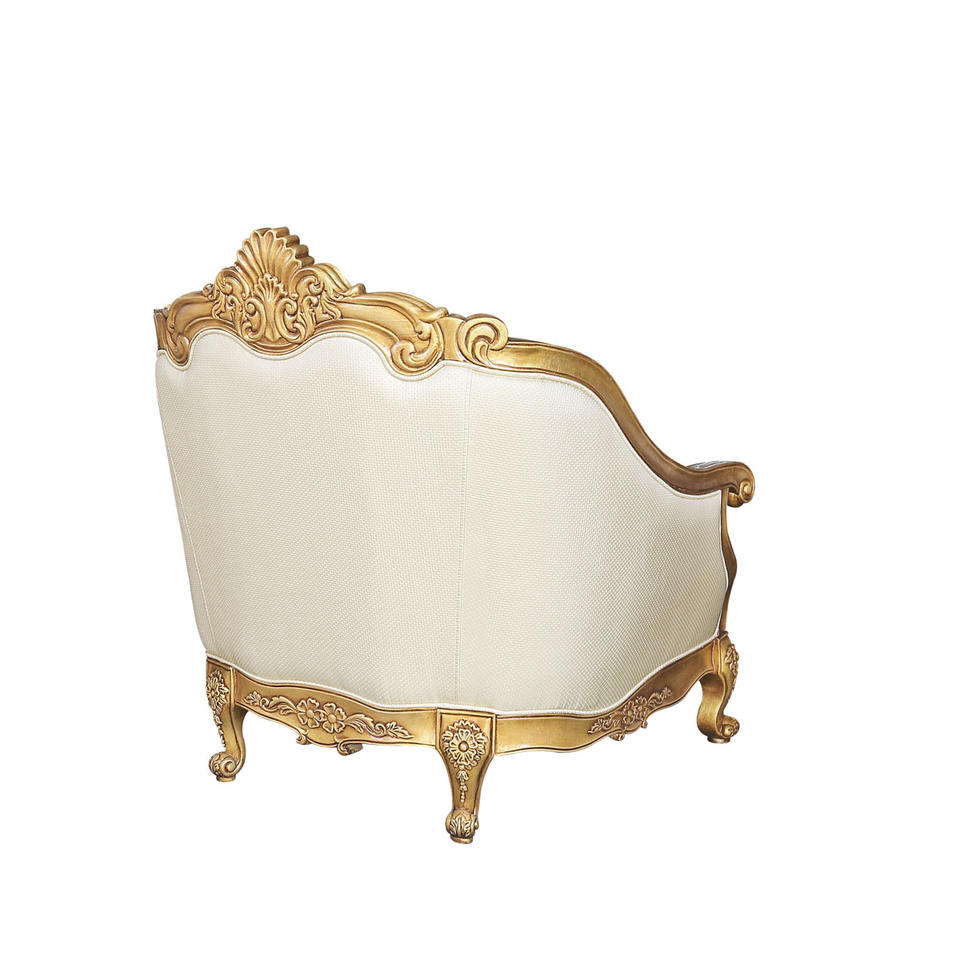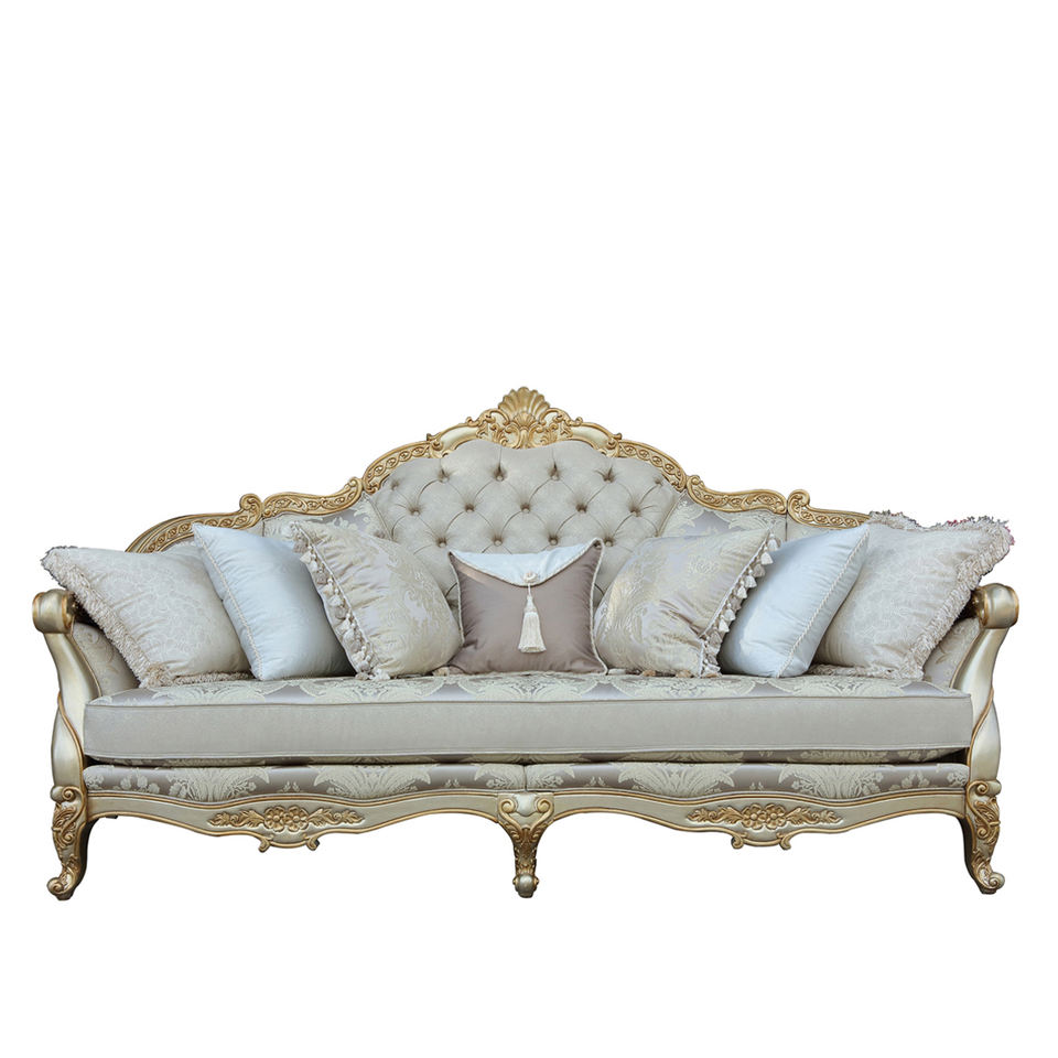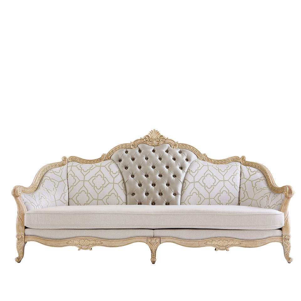 Set di Divani di Lusso in Stile Classico Francese Antico, Rivestimento in Tessuto Crema per Soggiorno