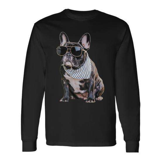 French Bulldog Long Sleeve T-Shirt With Sunglasses And Bandana For Dog Lovers