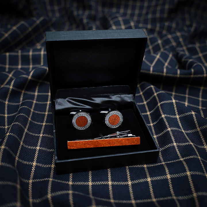 Set di gemelli regalo gemelli francesi in legno massello di rame fermacravatta gemelli gemelli e fermacravatte Set di gemelli