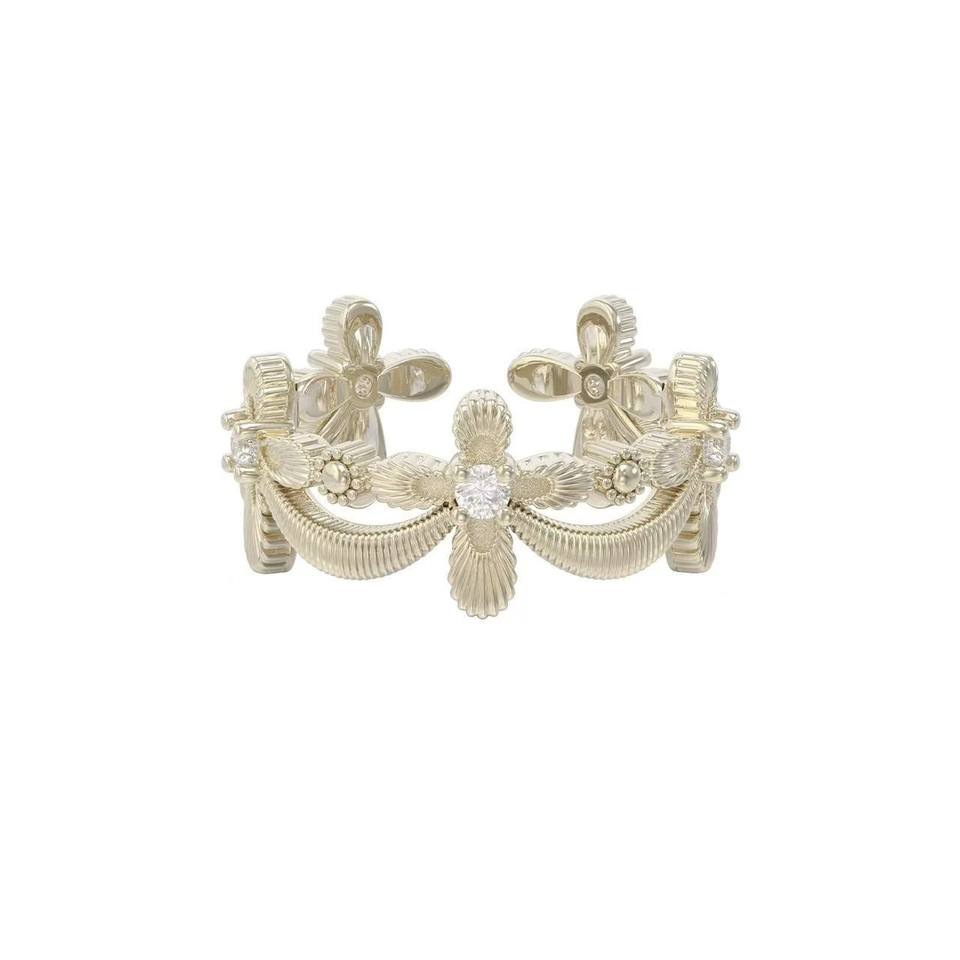 French Elegant Diamond Floral Cross Rings Luxury Adjustable Cubic Zircon Textured Cross Rings for Women Anniversary Gifts