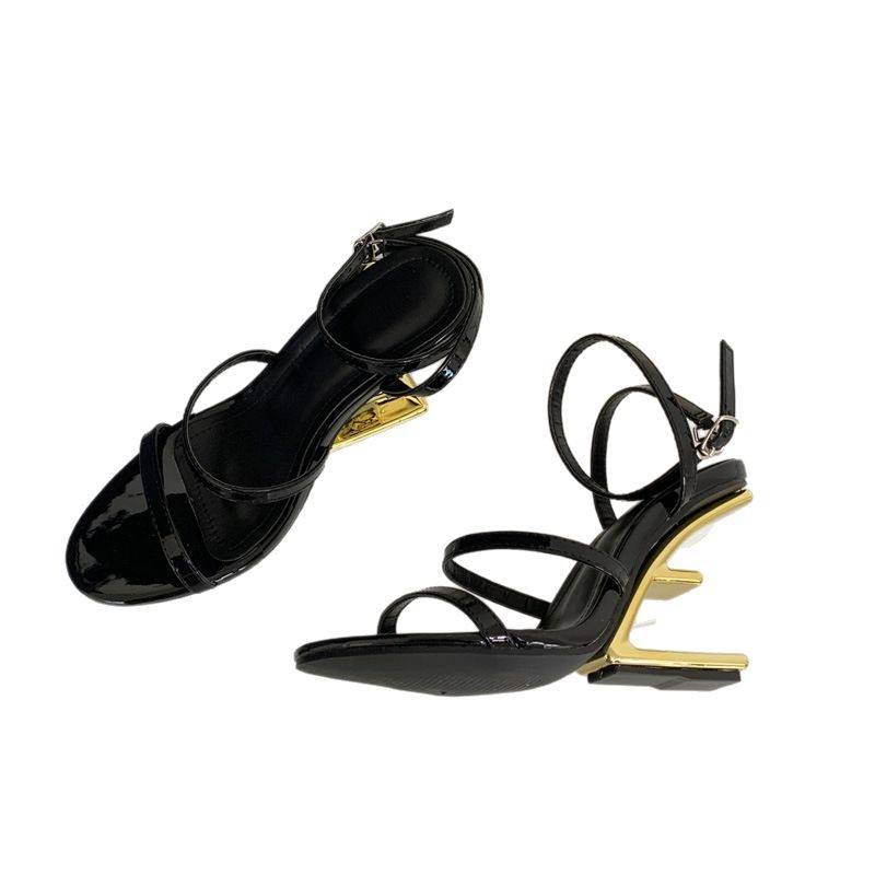 Sandali con tacco alto di tendenza francese alla moda con cinturino alla caviglia in argento con tacco speciale e plateau stile Sexy per la nuova estate