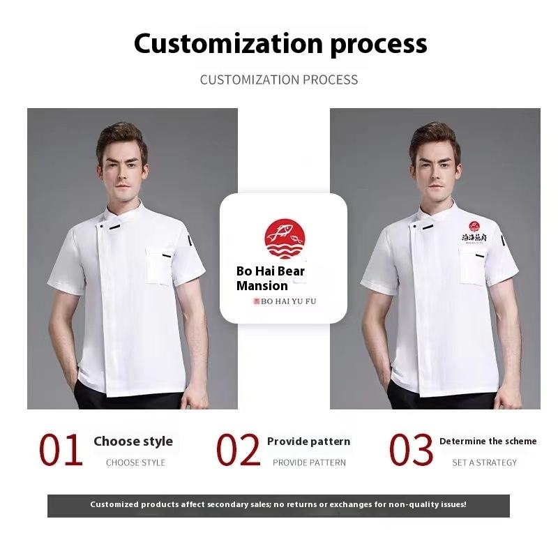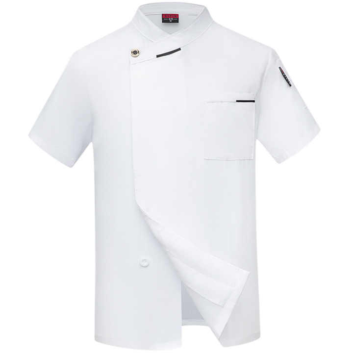 Abbigliamento da lavoro estivo da uomo di fascia alta francese divise da Chef a maniche corte in tessuto sgualciato per cucina panetteria alberghi