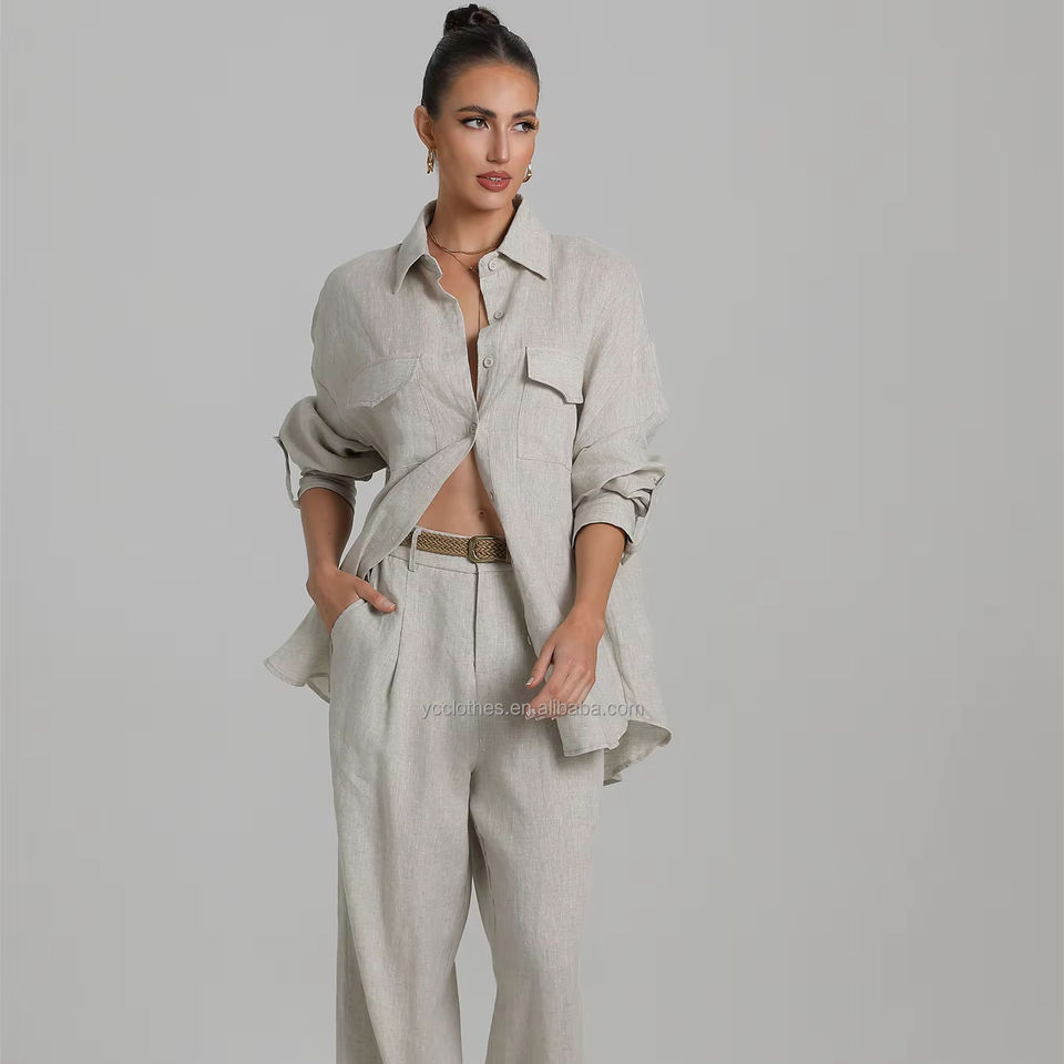 French High-End Women's Linen Suit for Summer Relaxing Sun-Protected Solid Woolen Shirt Shorts Casual Versatile Spring/Summer
