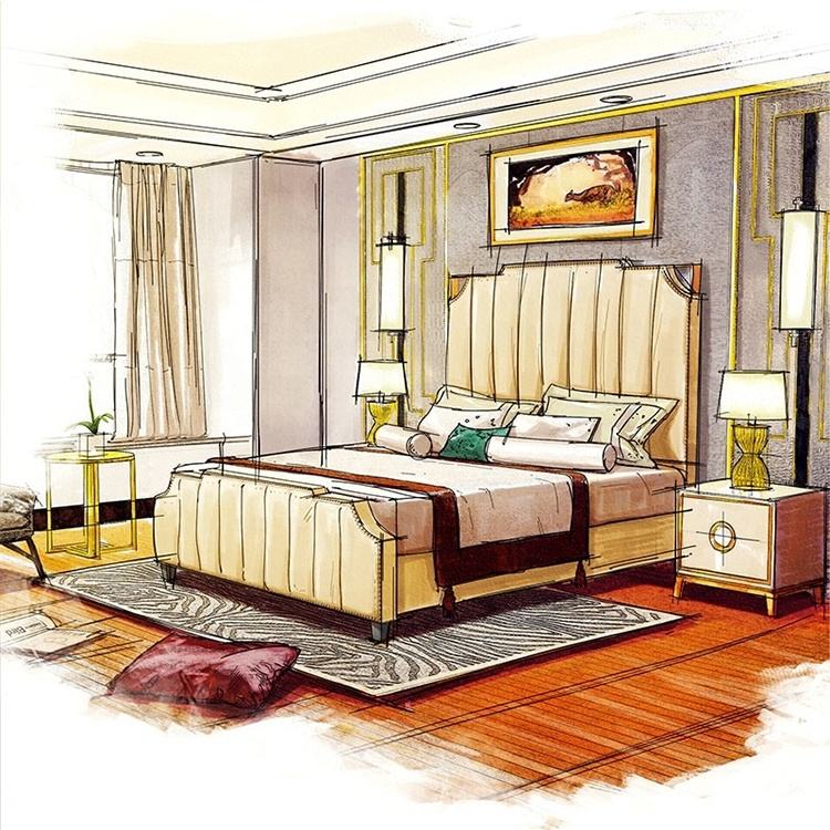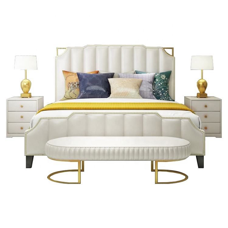 French Italian New Arrival Modern Gold Frame Upholstered Luxury Leather Bed king Size Headboard