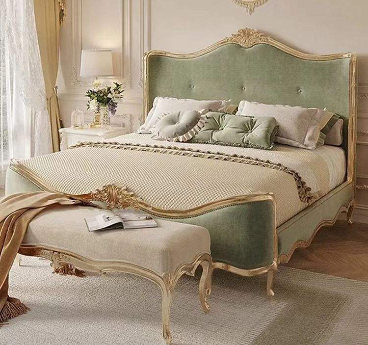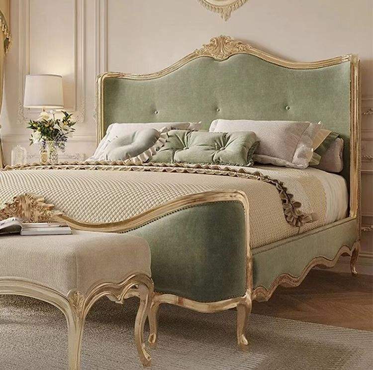 Letto matrimoniale in legno massello intagliato di fascia alta in stile palazzo di lusso moderno francese leggero