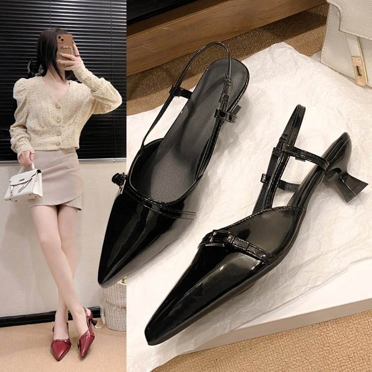 Sandali Francesi a Punta con Cinturino Incrociato 2025 Nuovo Stile Vintage Versatile con Tacco Basso e Cinturino Posteriore per Donne