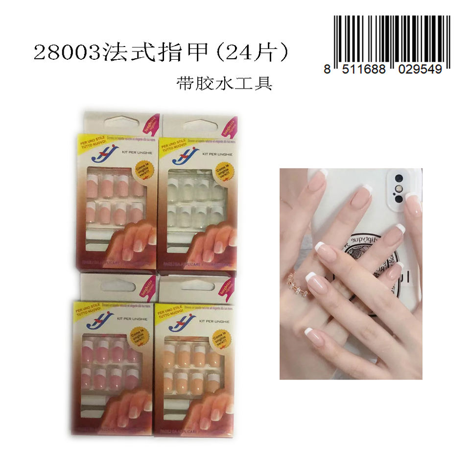 Unghie finte French Press On, 24 pezzi, rettangolari, acriliche, eleganti, per manicure, accessorio di bellezza per nail art.