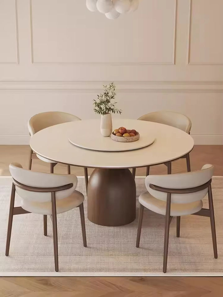 Tavolo da Pranzo in Legno Massello Stile Retrò Francese con Quattro Sedie, Combinazione di Alta Gamma per Appartamenti e Ville, Tavolo Rotondo Semplice