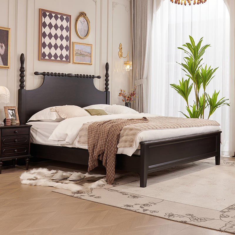 Francese retrò in legno massello letto matrimoniale antica camera da letto principale mobili con avanzato letto a colonna romana per uso domestico