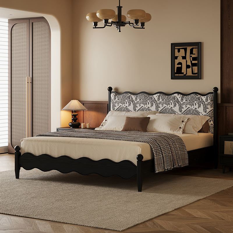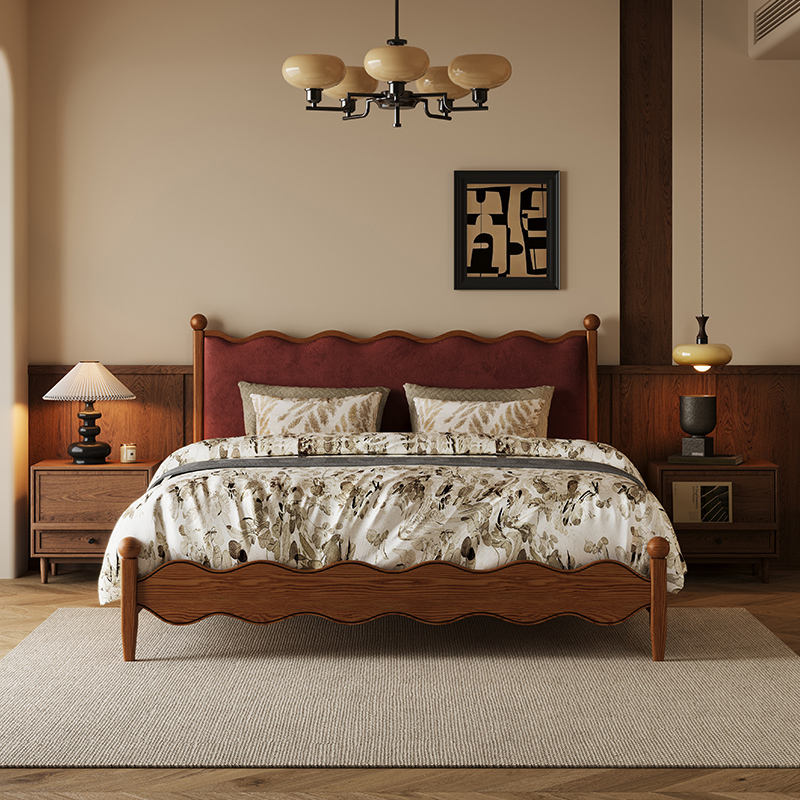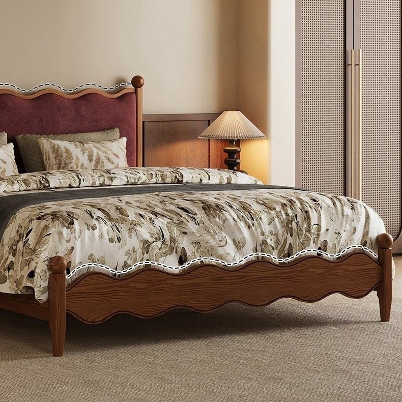 Stile retrò francese 1.8m in pelle frassino letto King Size moderno Ripple Design antico per piccolo appartamento camera da letto matrimoniale